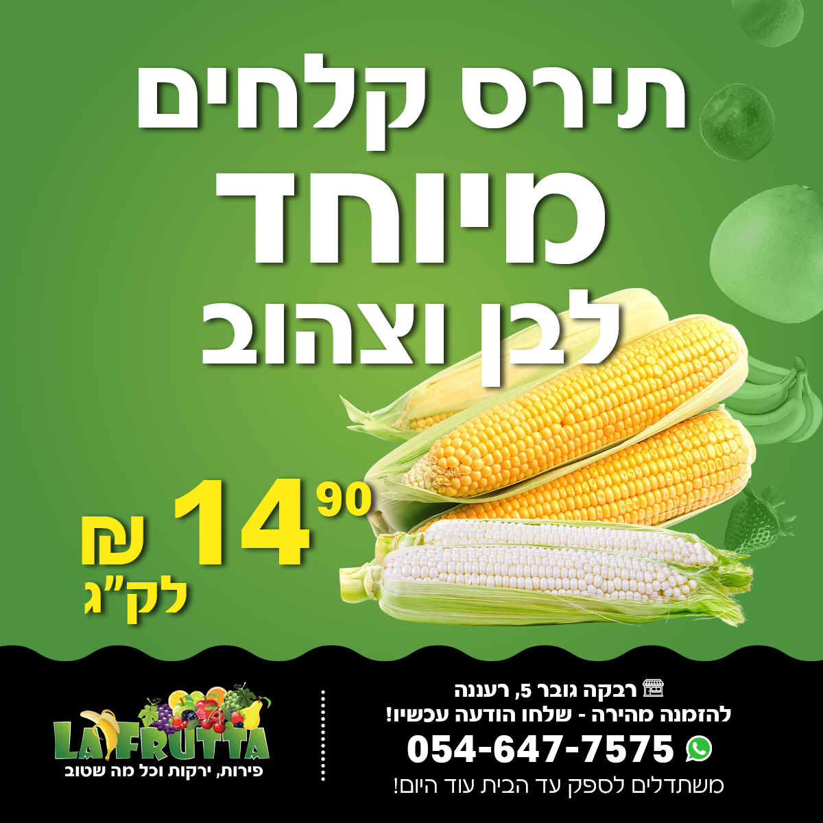 “מבצע תירס קלחים לבן/צהוב 14.90 לק"ג” נוסף לסל הקניות. מעבר לסל הקניות