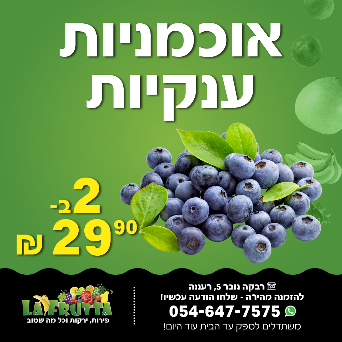 “מבצע אוכמניות ענקיות 2 ב29.90” נוסף לסל הקניות. מעבר לסל הקניות